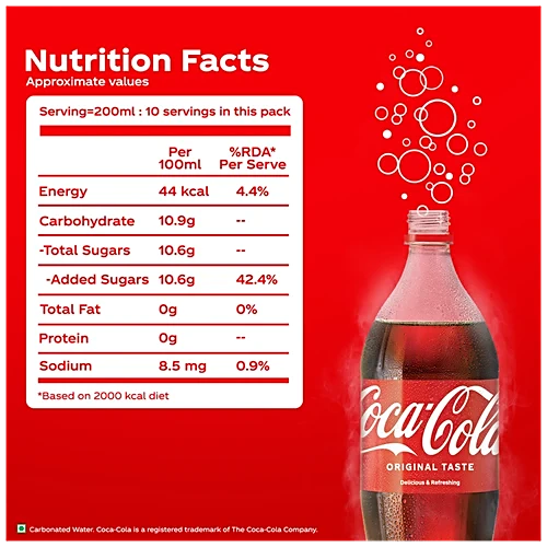 Happiness is all about creating real magic from everyday moments spent together with family or friends. Turn up the energy during an afternoon lull, sweltering heat, and long exhausting days with the crisp, delicious taste of Coca-Cola Original that is uplifting till the last sip. Make meals tastier with Coke, be it peri-peri or extra cheese. Every slice of pizza is made yummier with a Coke. Enjoy this soft drink ice-cold for maximum refreshment and add magic to your family meals because there’s magic when we eat together. Enjoy Coke while playing fun games, binge-watching your favourite series, listening to your favourite song, and making the most of your break moments. Explore how you can be closer to your loved ones with drinks worth savouring, playlists worth listening to, and memories worth remembering. The oh-so refreshing fizz and original taste of Coca-Cola drink make life’s special moments a little more special. Whether it’s about raising a toast to a new partnership or celebrating the win, sharing a Coke never ends. Storage Instructions: Store in a cool & dry place away from direct sunlight.