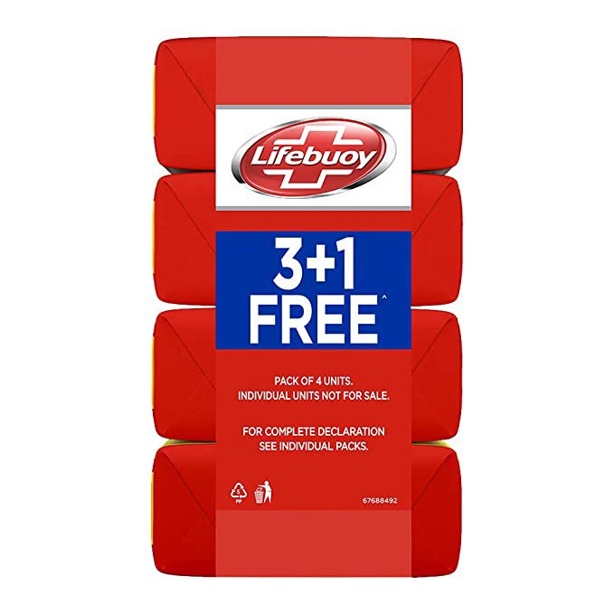 Lifebuoy Total Soap, 125 g (Pack of 4) with (Buy 3 Get 1 Free)