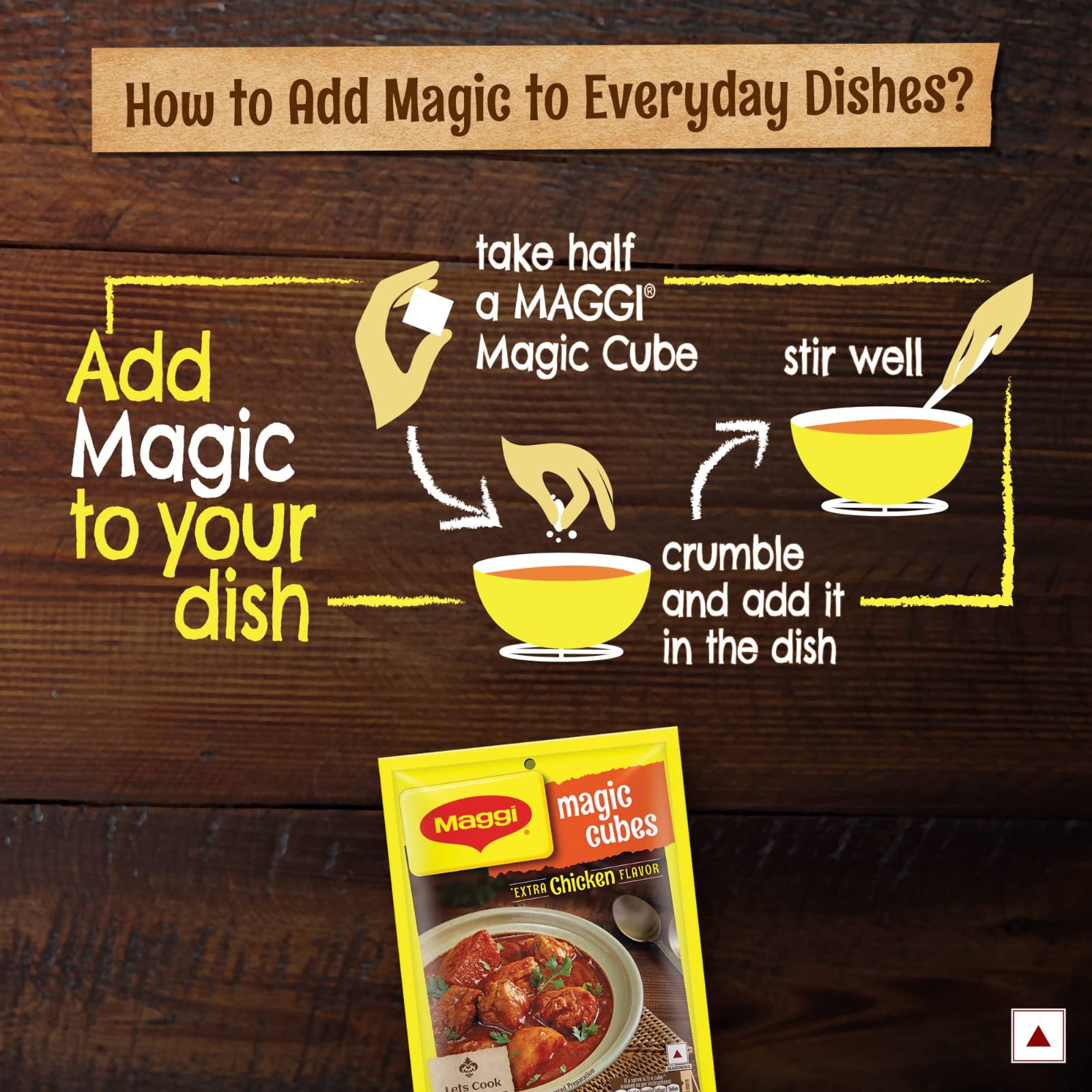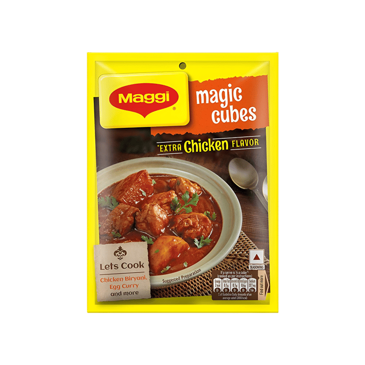 Turn everyday meals into flavour-packed delights with Maggi Magic Cubes (Chicken). Each cube is filled with a rich blend of herbs, spices, and seasonings that melt perfectly into your curries, soups, biryanis, noodles. Just crumble or add directly while cooking to enhance the aroma and taste instantly.
