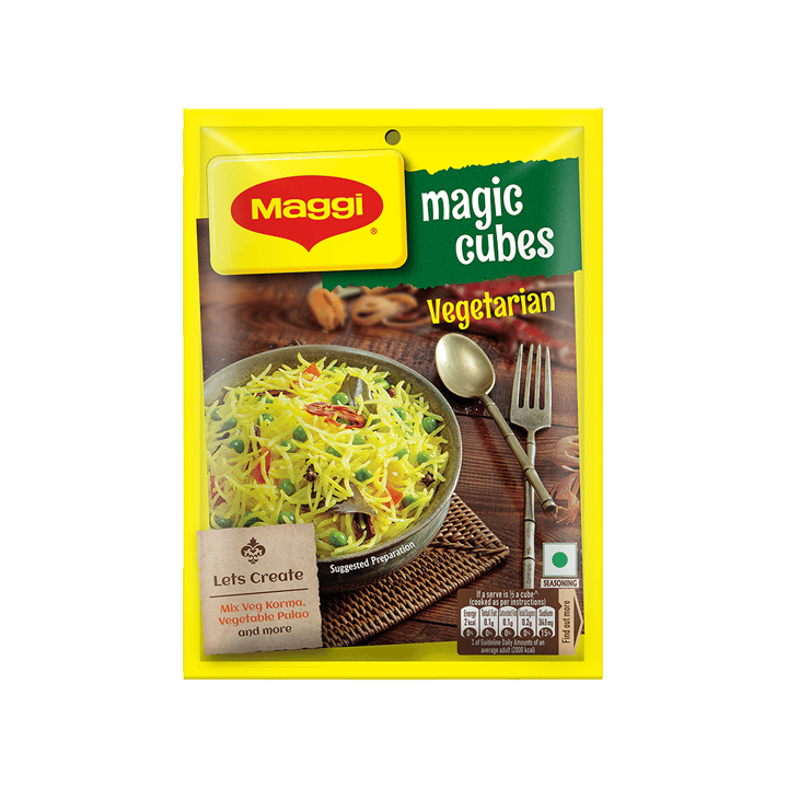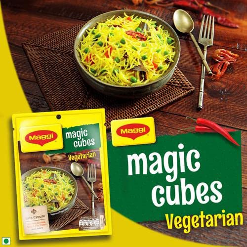 Turn everyday meals into flavour-packed delights with Maggi Magic Cubes (Vegetarian). Each cube is filled with a rich blend of herbs, spices, and seasonings that melt perfectly into your curries, soups, biryanis, noodles, and sabzis. Just crumble or add directly while cooking to enhance the aroma and taste instantly.