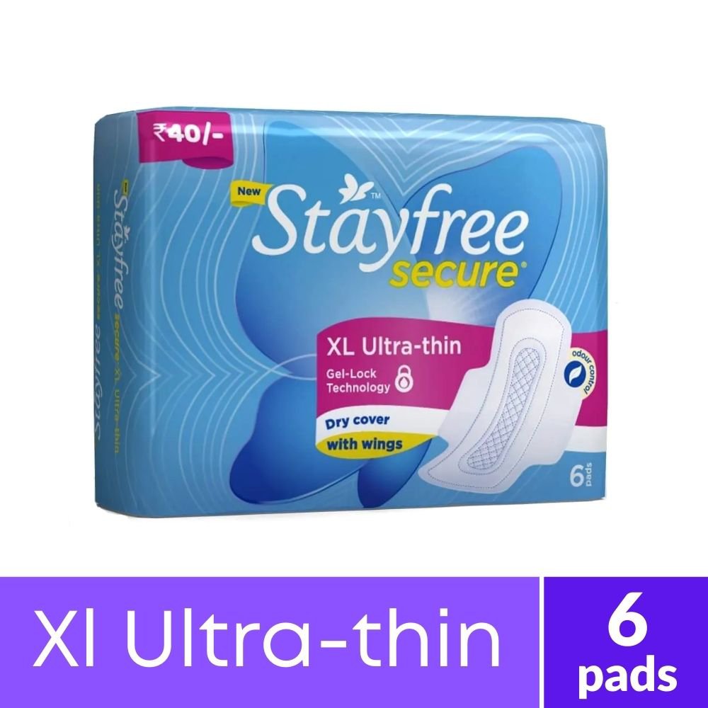 Stayfree Secure Sanitary Pads XL Ultra Thin with Wings – 6 pads
